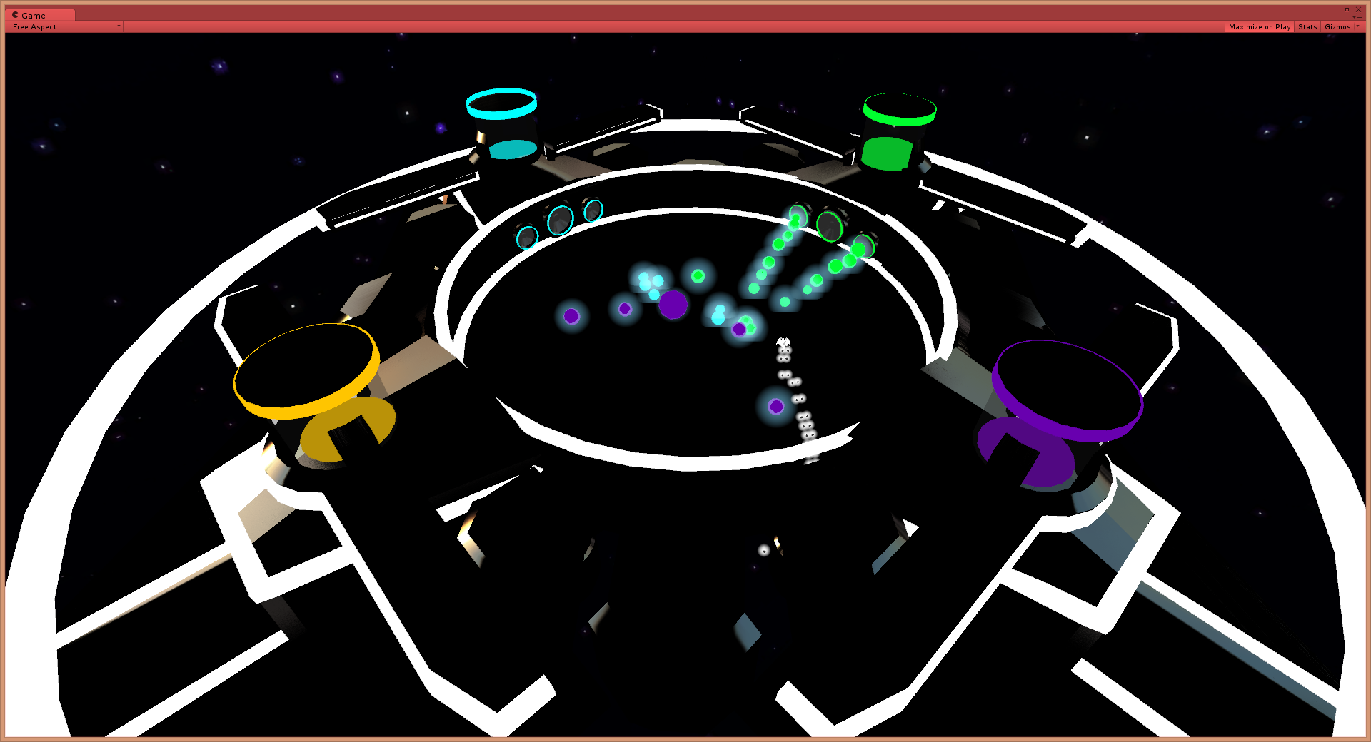 At any time during the track that a channel is above the set volume or ‘spawning threshold’, that speakers of that colour will spawn an enemy (up to 5 enemies per second for each channel).